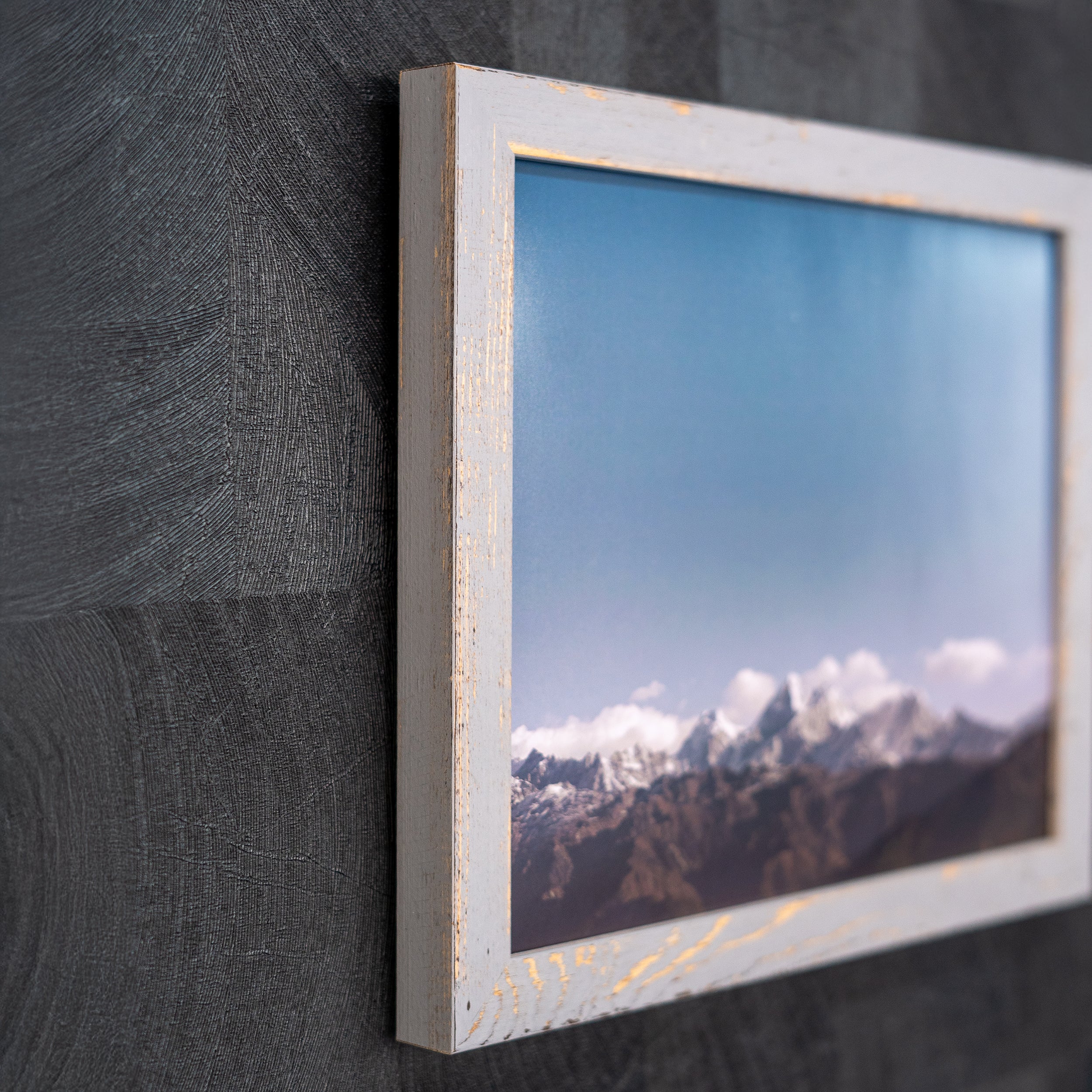 A cool-toned, stone inspired grey wood finish that bridges the gap between modern and rustic styling. Grey ash frames are hugely popular in contemporary UK interiors, offering a softer alternative to black while still providing contrast. The natural grain timber keeps the frame grounded in that rustic wooden photo frame category, while the grey tone adds a refined, urban feel.